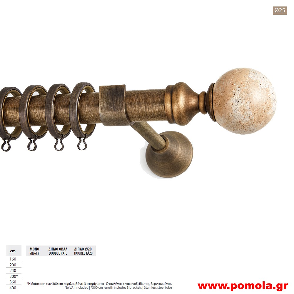 102 Κουρτινοβεργα Φ 25 με τελείωμα ΜΑΡΜΑΡΟ