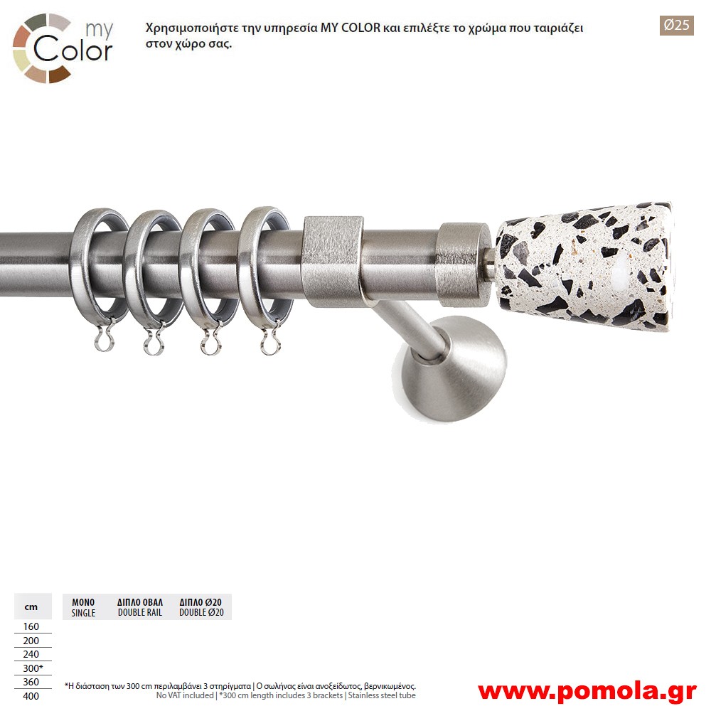 101 Κουρτινοβεργα Φ 25 με τελείωμα ΜΑΡΜΑΡΟ