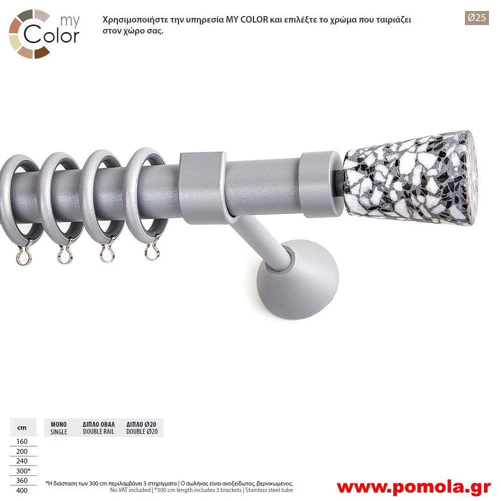 101 Κουρτινοβεργα Φ 25 με τελείωμα ΜΑΡΜΑΡΟ