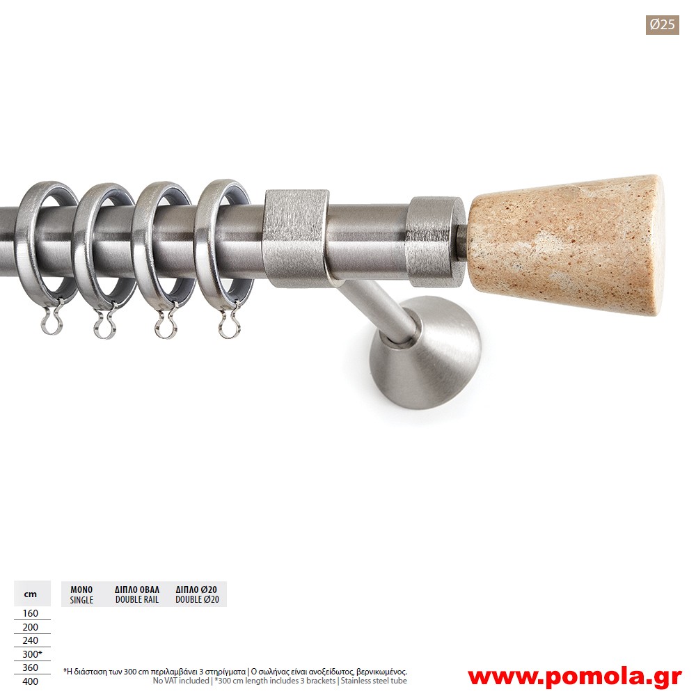 095 Κουρτινοβεργα Φ 25 με τελείωμα ΜΑΡΜΑΡΟ