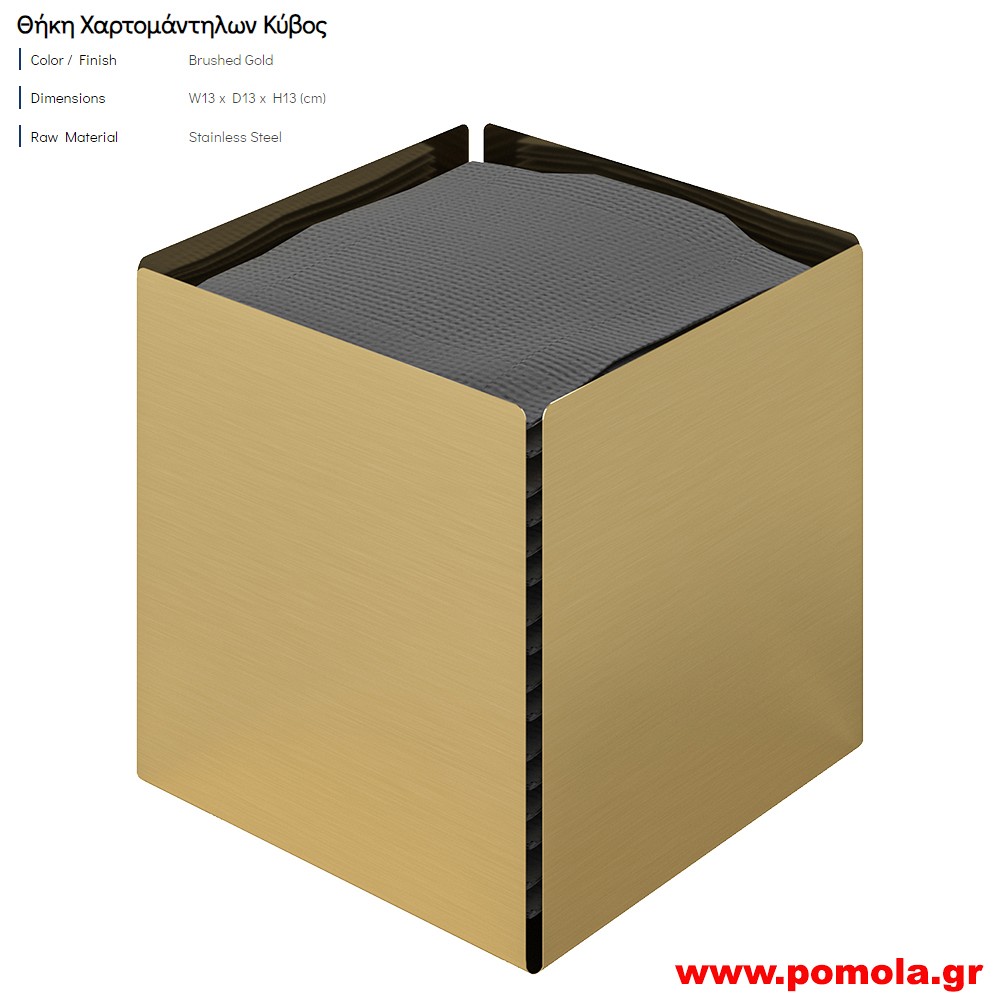 Θήκη Χαρτομάντηλων Κύβος - Gold, Pam & Co, W13 x D13 x H13 (cm), 124-024