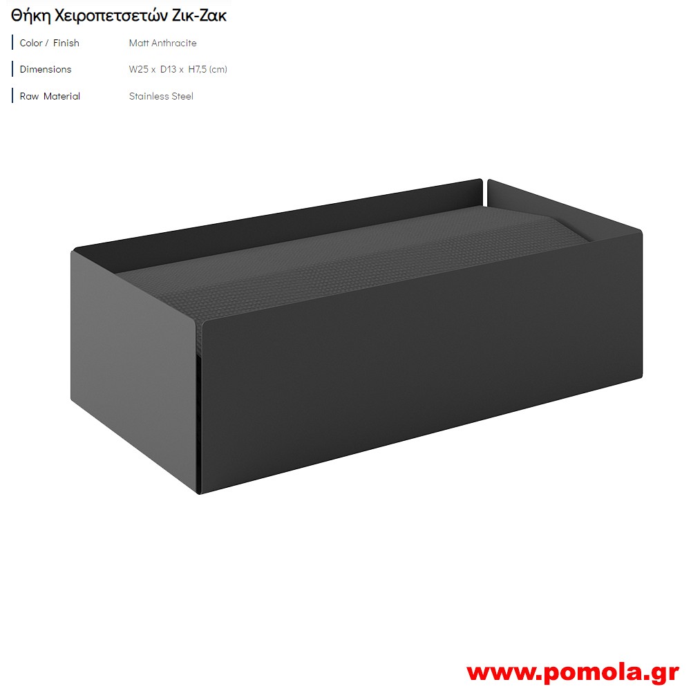 Επιτοίχια Θήκη για Χειροπετσέτες Ζικ-Ζακ - Matt Inox, Pam & Co, W28,5 x D10 x H37 (cm), 122-011