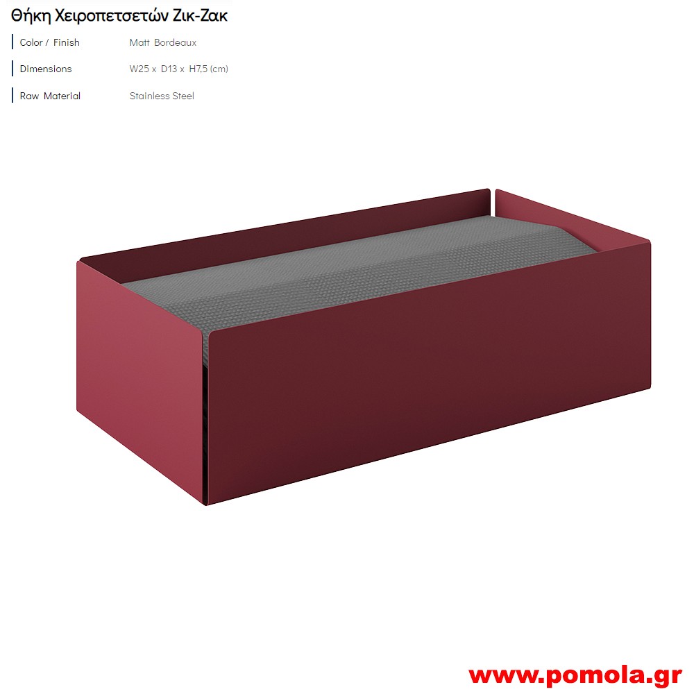 Επικαθήμενη / Επιτοίχια Θήκη Χαρτομάντηλων - Matt Bordeaux, Pam & Co, W25 x D13 x H7,5 (cm), 120-153