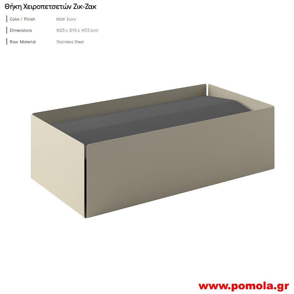 Επιτοίχια Θήκη για Χειροπετσέτες Ζικ-Ζακ - Matt Concrete Grey, Pam & Co, W28,5 x D10 x H37 (cm), 122-163