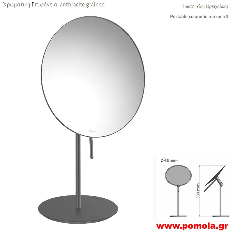 043 Καθρέπτης Μεγεθυντικός Χ3 επικαθήμενος μαύρο μεταλλικό γυαλιστερό