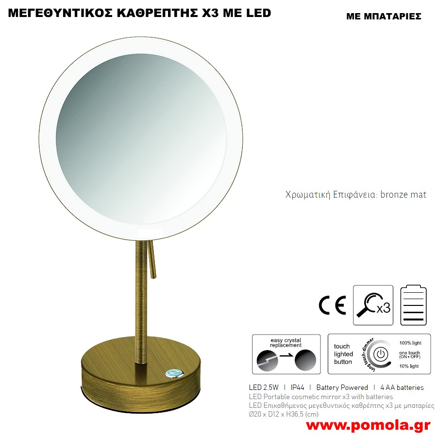 Κωδικός: 00147474110 ΚΑΘΡΕΠΤΗΣ ΜΕΓΕΘΥΝΤΙΚΟΣ Χ3 ΜΕ ΦΩΣ LED ΕΠΙΚΑΘΗΜΕΝΟΣ ΜΠΡΟΝΖΕ ΜΑΤ ΜΕ ΜΠΑΤΑΡΙΕΣ