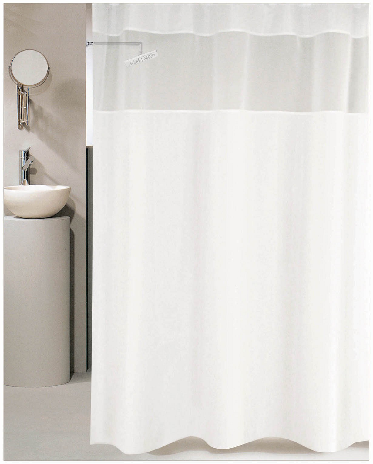 Υφασμάτινη- πολυεστερική, αδιαβροχοποιημένη κουρτίνα μπάνιου. Διατίθεται σε 3 διαστάσεις.