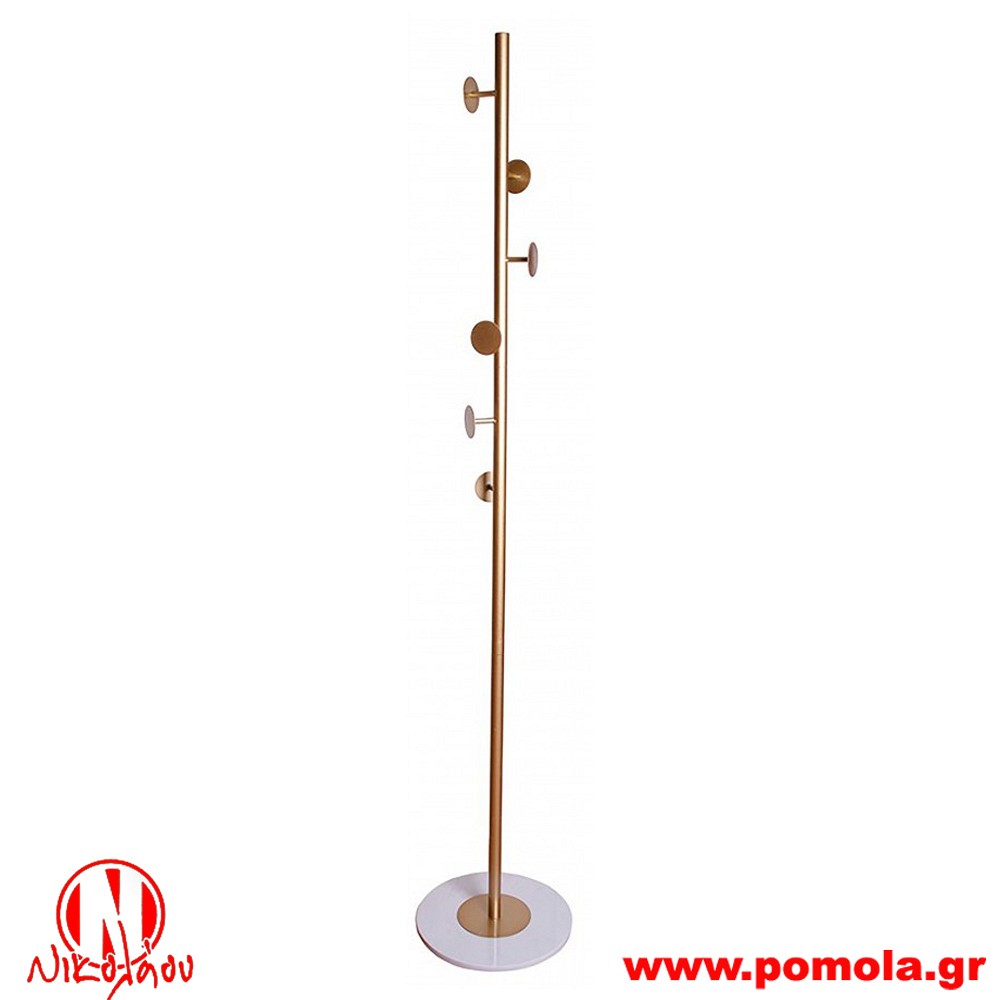 Κωδικός: 00173740038 Καλόγερος 6 θέσεων με μεταλλικό κορμό σε χρυσό χρώμα και μαρμάρινη λευκή βάση.
