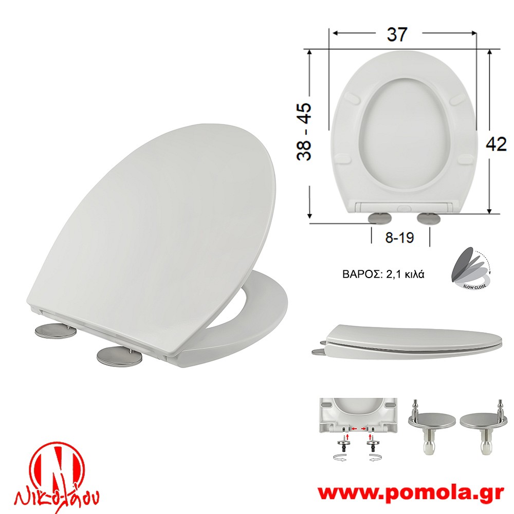 Κάλυμμα λεκάνης mdf soft close με πλαστικούς μεντεσέδες 37,5χ46 cm Eurocasa