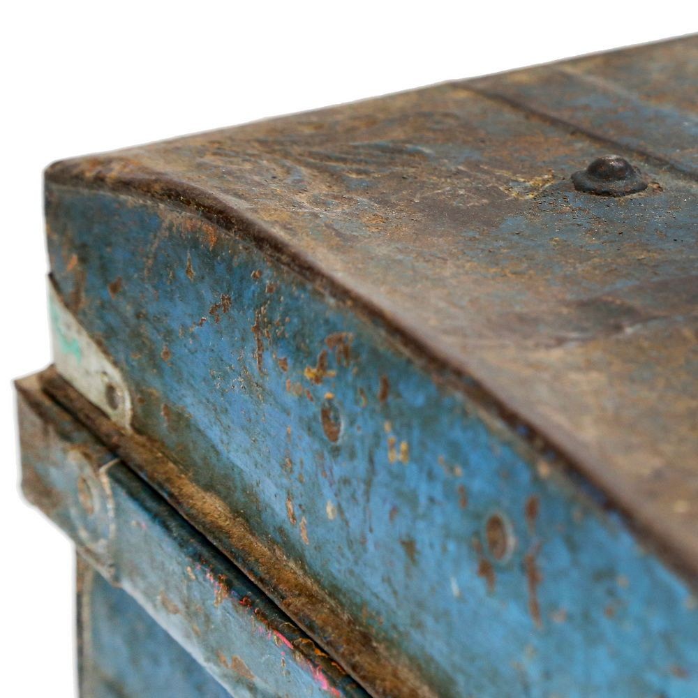 Αυθεντική vintage βιομηχανικού σχεδιασμού, βαλίτσα ταξιδιού, συμπιεσμένου και διπλωμένου χάλυβα. Δεκαετίες ταξιδιών έχουν δώσει ένα υπέροχο φινίρισμα στην επιφάνεια της βαλίτσας . Στην παλιά εποχή τα ταξίδια χρειάζονταν μέρες έως εβδομάδες. Χρησιμοποιήθηκαν ως ασφαλής τρόπος για να προστατεύσουν τα υπάρχοντά τους κατά τη διάρκεια αυτού του ταξιδιού. Αυτά τα παλαιά και ταλαιπωρημένα μεταλλικά ταξιδιωτικά μπαούλα κατασκευάζονταν συχνά με εισαγόμενο βελγικό χάλυβα και κατασκευάζονταν τοπικά κατόπιν άδειας. Όλα είναι ευρύχωρα και είναι ιδανικά για αποθήκευση περιοδικών, βιβλίων, συλλογών και άλλων. Επίσης είναι τέλεια για προβολή σε σπίτια ή καταστήματα λιανικής. Η ηλικία τους είναι περίπου 50 έως 80 ετών. Κάθε μπαούλο είναι μοναδικό και έχει διαφορετικές διαστάσεις, χρώμα και λεπτομέρειες! Ορισμένα έχουν ορειχάλκινες κλειδαριές, πριτσίνια, χάρτινα εισιτήρια, ακόμη και ονόματα προηγούμενων ιδιοκτητών. • Διάσταση: περίπου 76x43x27 εκ. • Υλικό: Σίδερο