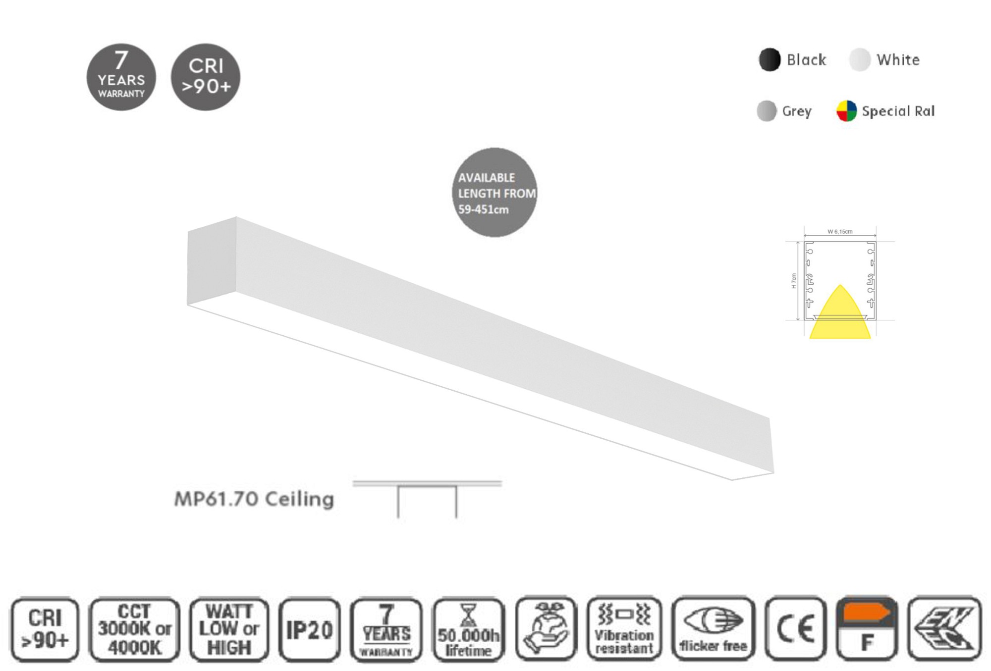 MP61.56T-171-H-3-O-OF-WH Linear Profile Lighting Ceiling 61.5x56mm 171cm