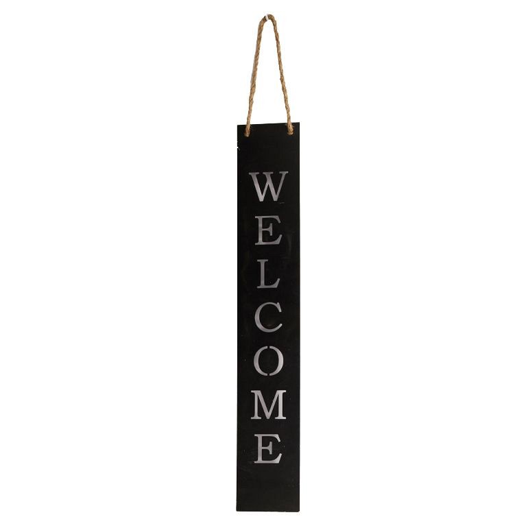 Μακρόστενη μεταλλική επιγραφή με cut out την λέξη WELCOME. Εντυπωσιακό σε εισόδους καταστημάτων αλλά και σπιτιών για να καλωσορίζετε τους επισκέπτες σας. • Υλικό: Μέταλλο • Χρώμα: Μαύρο • Διάσταση: 9x55 εκ.
