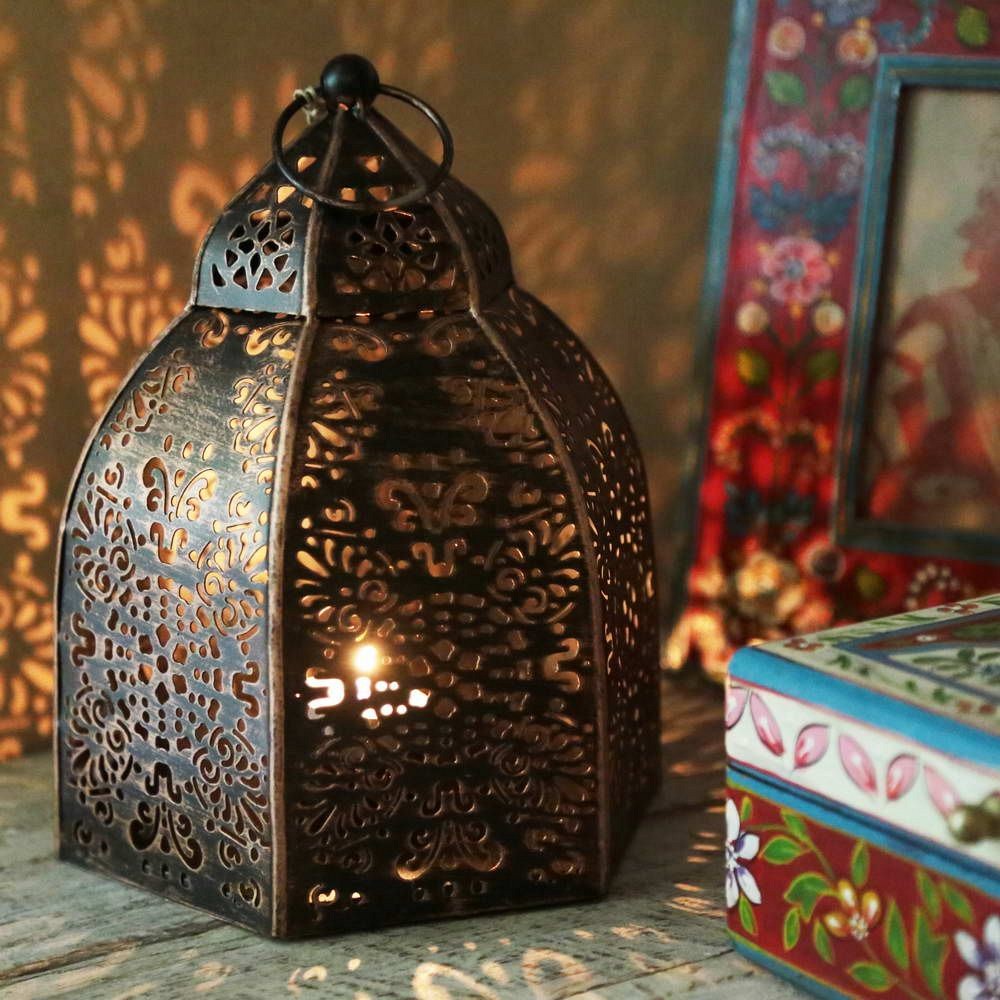 Μεταλλικό φανάρι σε σκούρο αντικέ χάλκινο χρώμα που μπορεί να τοποθετηθεί σε ένα τραπέζι ή να κρεμαστεί σε κάποιο σημείο του σπιτιού. Θα δώσει μια αίσθηση ζεστασιάς στον χώρο σας. • Διάσταση: 17,5x17,5x21 εκ. • Ανακυκλωμένο σίδερο • Χειροποίητο στην Ινδία