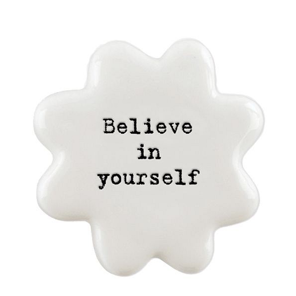 Συλλεκτικό βότσαλο σε σχήμα λουλουδιού από φίνα λευκή πορσελάνη και εγχάρακτο μήνυμα. Υπέροχη ιδέα για δώρα ή για να κάνετε μια δική σας πολύ όμορφη συλλογή. Διάσταση: 4x1,6 εκ.
