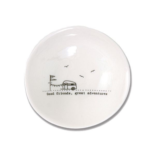 Μπολάκι από φίνα πορσελάνη με ζωγραφιά και εγχάρακτο μήνυμα: Good friends, great adventures Διάσταση: 10 x 3,3εκ.