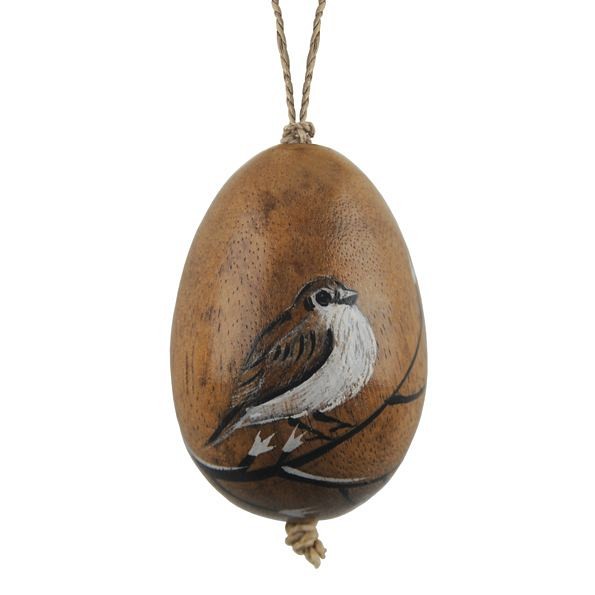 Ένα χειροποίητο αυγό, μια πινελιά διαχρονικής κομψότητας! Ανακαλύψτε τα υπέροχα ξύλινα αυγά της East of India, φτιαγμένα στο χέρι με μεράκι και προσοχή στη λεπτομέρεια. Σε φυσικό σκούρο χρώμα και ζωγραφισμένα στο χέρι, αυτά τα μοναδικά διακοσμητικά είναι ιδανικά για να δώσουν μια ζεστή και αυθεντική αίσθηση στον χώρο σας. Το αυγό διαπερνά φυσικό σκοινί γιούτας, επιτρέποντάς σας να το κρεμάσετε εύκολα όπου θέλετε – στο πασχαλινό σας δέντρο, σε ένα διακοσμητικό κλαδί ή σε μια όμορφη σύνθεση. Διαθέσιμο σε διάφορα σχέδια για να επιλέξετε το αγαπημένο σας ή να τα συνδυάσετε για μια αρμονική και ζεστή διακόσμηση.