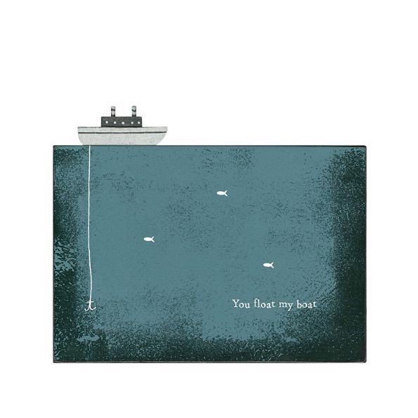 Ένα ξύλινο τουβλάκι σε μπλε γαλάζιο χρώμα που συμβολίζει την θάλασσα και στην κορυφή ένα μικροσκοπικό καραβάκι με μια άγκυρα ζωγραφισμένη. Το μήνυμα \'You float my boat\' ολοκληρώνει την σύνθεση. Υπέροχο διακοσμητικό ή ένα τέλειο δώρο για ένα αγαπημένο μας πρόσωπο.