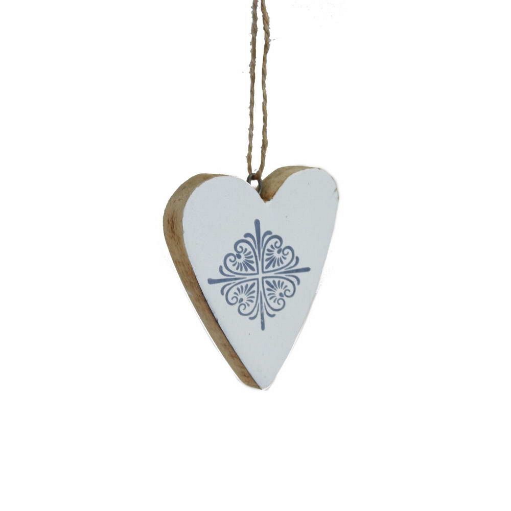 Ξύλινη καρδιά βαμμένη λευκή στις δύο πλευρές και τυπωμένο ένα σχέδιο σε μπλε navy. Υπάρχουν 4 διαφορετικά σχέδια. Διάσταση: 6,5x5,5 εκ.