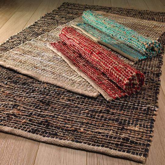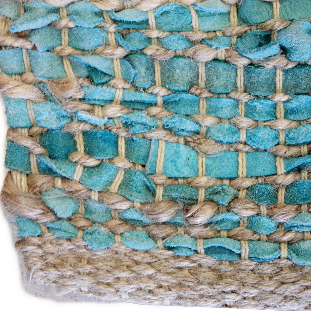 Αυτό το χαλί συνδυάζει την γιούτα ένα ανθεκτικό και φιλικό προς το περιβάλλον υλικό με ανακυκλωμένο δέρμα και δημιουργούν ένα μοναδικό ρουστίκ ύφος. Θα το βρείτε σε 4 χρώματα. Είναι προϊόν δίκαιου εμπορίου και χειροποίητο. Διάσταση: 90x150εκ. Υλικό: δέρμα & γιούτα τεμ.