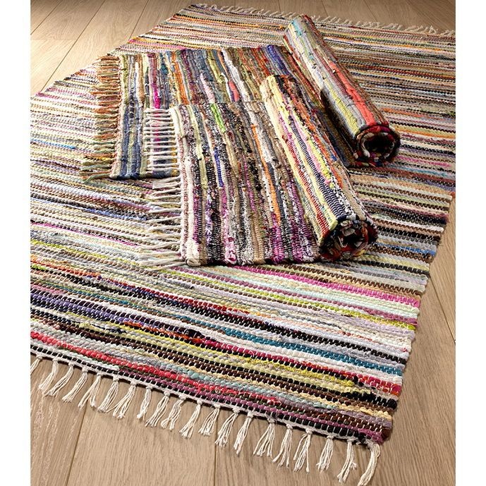 Πολύχρωμες κουρελούδες όπως φτιάχνονταν παλιά και στην Ελλάδα. Βαμβακερά υπόλοιπα υφασμάτων από βιομηχανίες κατασκευής ρούχων πλένονται, στεγνώνονται και πλέκονται σε κουρελούδες. Η συγκεκριμένη σειρά είναι από υφάσματα με έντονα και ζωηρά χρώματα, ραφές με λευκό νήμα και κρόσσια στα τελειώματα. Είναι διαθέσιμα σε πολλές διαστάσεις από 50x80εκ. έως 240 x 360εκ. Φροντίδα: Βουρτσίστε τα με την ηλεκτρική σκούπα. Πλένονται στο χέρι σε κρύο νερό, ξεχωριστά από άλλα ρούχα με μη βιολογικά απορρυπαντικά. Μην τα μουλιάζετε. Μην τα βάζετε σε στεγνωτήριο. 100% ανακυκλωμένο βαμβάκι – Χειροποίητα από Ινδία Διάσταση: 150x210εκ.
