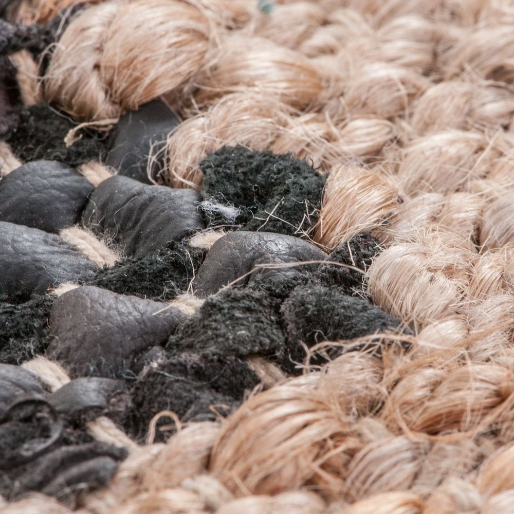 Αυτό το χαλάκι είναι φτιαγμένο από γιούτα και λωρίδες ανακυκλωμένου δέρματος πλεγμένες μεταξύ τους έτσι ώστε να δημιουργούν γεωμετρικά σχήματα. Τα ζεστά γήινα χρώματα και η υφή του δέρματος το κάνουν ιδανικό για ξύλινα και πέτρινα δάπεδα. • Είναι προϊόν δίκαιου εμπορίου • Υφαντό στο χέρι • Προϊόν ανακύκλωσης • Διάσταση: 60x90εκ