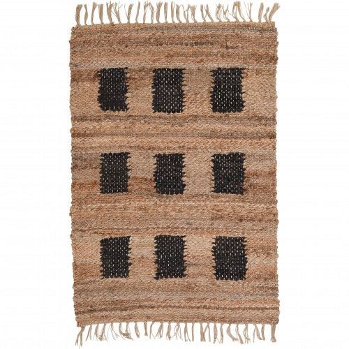 Κωδικός: 1000179801Χαλί 60x90 γιούτα και τετράγωνα μαύρο δέρμα