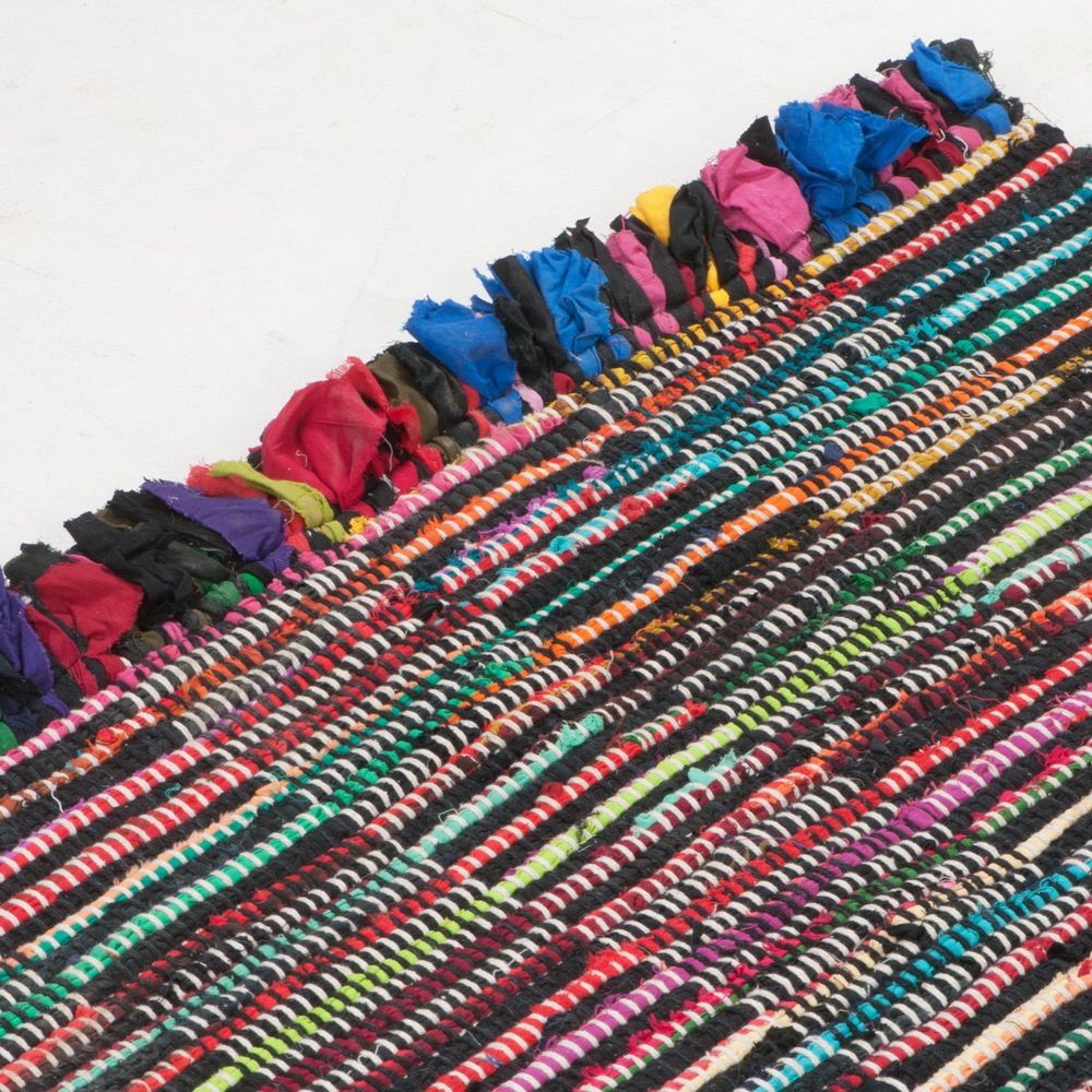 Ζαλιστήκατε? Αυτά μπορεί λοιπόν να κάνει ένας αργαλειός αν πέσει στα σωστά χέρια! Είναι ένα χαλί chindi δηλαδή την τεχνική που θέλει διάφορα κομμάτια βαμβακερών υφασμάτων ραμμένα μεταξύ τους με χοντρά νήματα. Στην περίπτωση αυτή όμως το chindi απογειώθηκε. Παρατηρήστε τα κρόσσια στο τελείωμα που είναι φτιαγμένα από τα ίδια κουρελάκια του χαλιού και είναι ένα πραγματικό στολίδι. • Είναι προϊόν δίκαιου εμπορίου • Χειροποίητο • Διάσταση: 90x150εκ