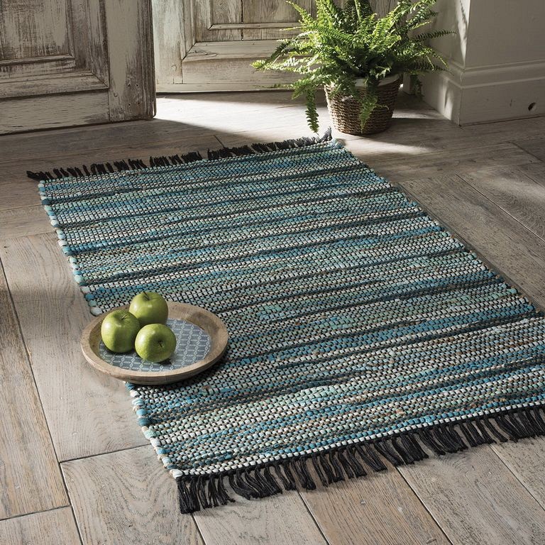 Χαλί 120x180 με σειρές κουρελάκια μπλε