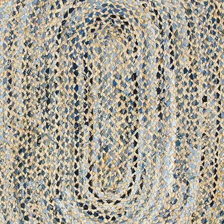 Πολύ μοντέρνο και όμορφο χαλί σε μπλε τόνους, φτιαγμένο από denim τζιν και φυσική γιούτα. Η πλέξη είναι κοτσίδα και γίνεται σε παραδοσιακούς αργαλειούς. Θα το βρείτε σε 3 διαστάσεις. • Χειροποίητο στην Ινδία • Προϊόν δίκαιου εμπορίου • Διάσταση: 60x90εκ.