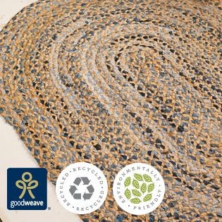 Πολύ μοντέρνο και όμορφο χαλί σε μπλε τόνους, φτιαγμένο από denim τζιν και φυσική γιούτα. Η πλέξη είναι κοτσίδα και γίνεται σε παραδοσιακούς αργαλειούς. Θα το βρείτε σε 3 διαστάσεις. • Χειροποίητο στην Ινδία • Προϊόν δίκαιου εμπορίου • Διάσταση: 90x135εκ.