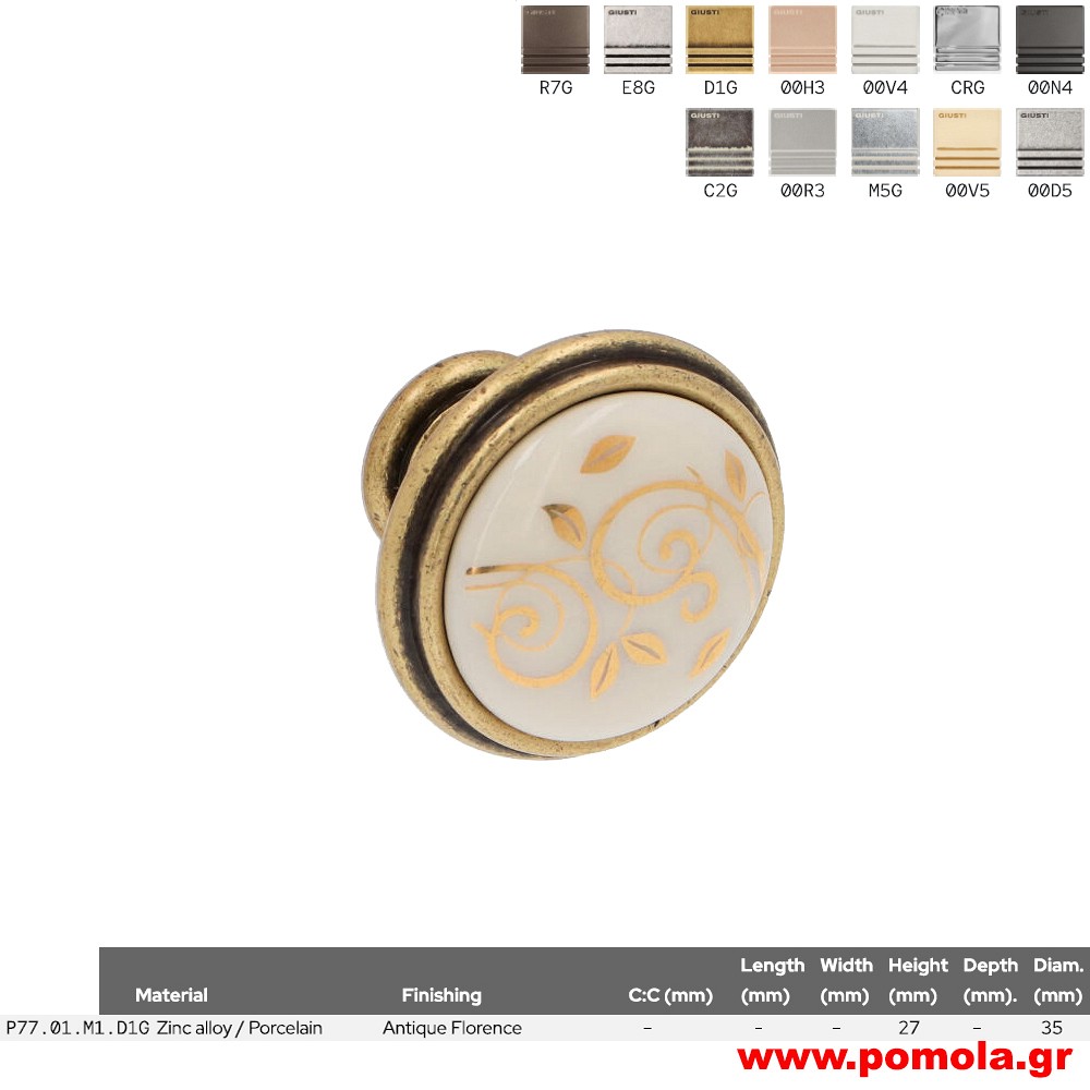 201 Πομολάκι με πορσελάνη, κουζίνας, ντουλάπας, επίπλου, ΙΤΑΛΙΑΣ