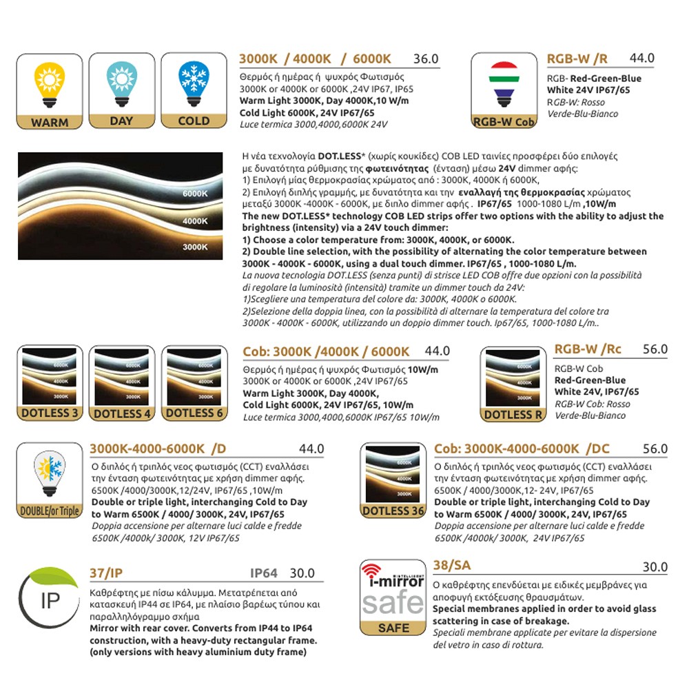 Επιπλέον, διαθέτουν αδιάβροχη ταινία LED IP67, ενώ όταν η ταινία είναι μέσα σε κανάλι Ip65.