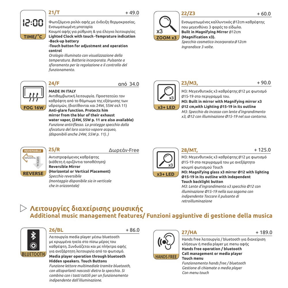 Oι φωτιζόμενοι και multimedia καθρέπτες μπάνιου μας με τεχνολογία αιχμής της τελευταίας γενιάς σε νέα πρότυπα.