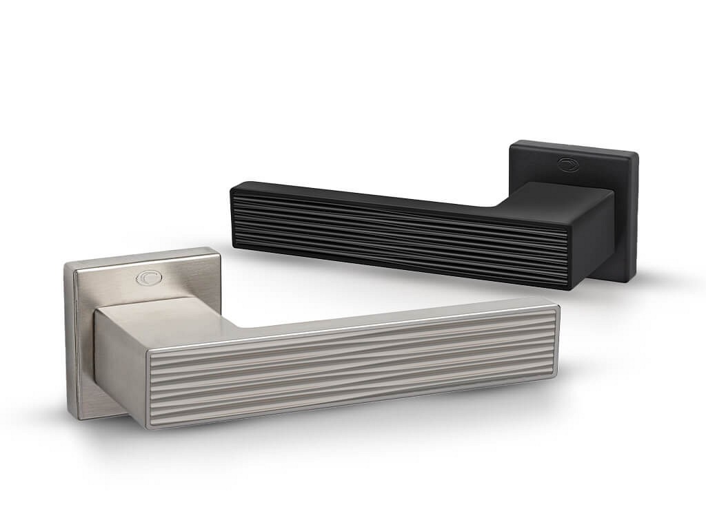 Δεξιά Χειρολαβή Πόρτας σε Ροζέτα με Επιστόμιο Κυλίνδρου Σατέ