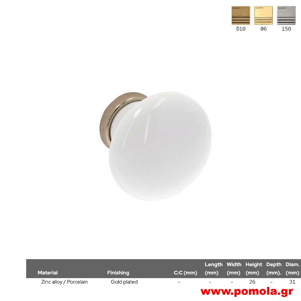 Κωδικός: 00183296988 Πομολάκι πορσελάνης για κουζίνα, ντουλάπα και επίπλου, ΙΤΑΛΙΑΣ