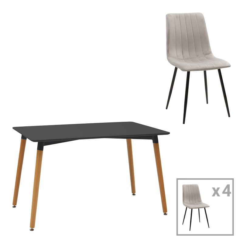 Κωδικός: 1000187612Τραπεζαρία Natali-Noor pakoworld σετ 5τεμ MDF μαύρο-γκρι-πόδια φυσικό 120x80x76εκ