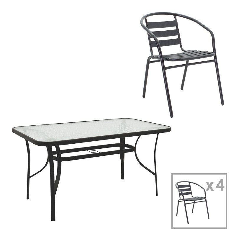 Κωδικός: 1000191209Τραπεζαρία Tade-Ensure pakoworld 5τεμ μέταλλο-γυαλί σε μαύρη απόχρωση 140x80x70εκ