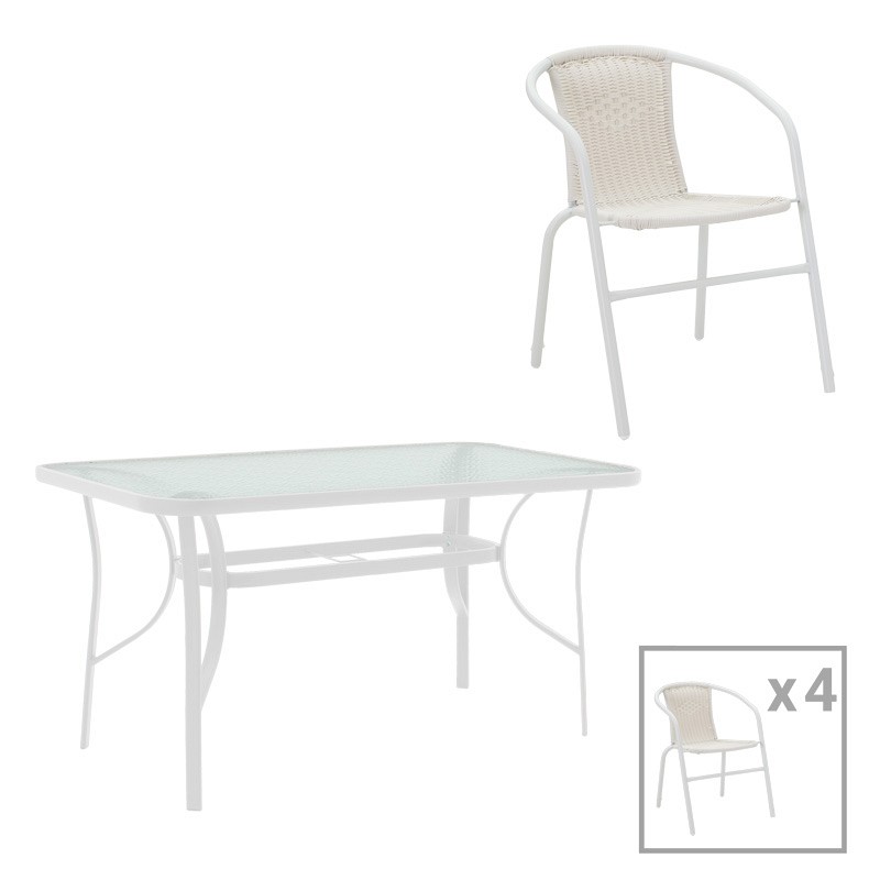 Κωδικός: 1000191215Τραπεζαρία Obbi-Ensure pakoworld 5τεμ μέταλλο-γυαλί σε λευκή απόχρωση 120x70x70εκ