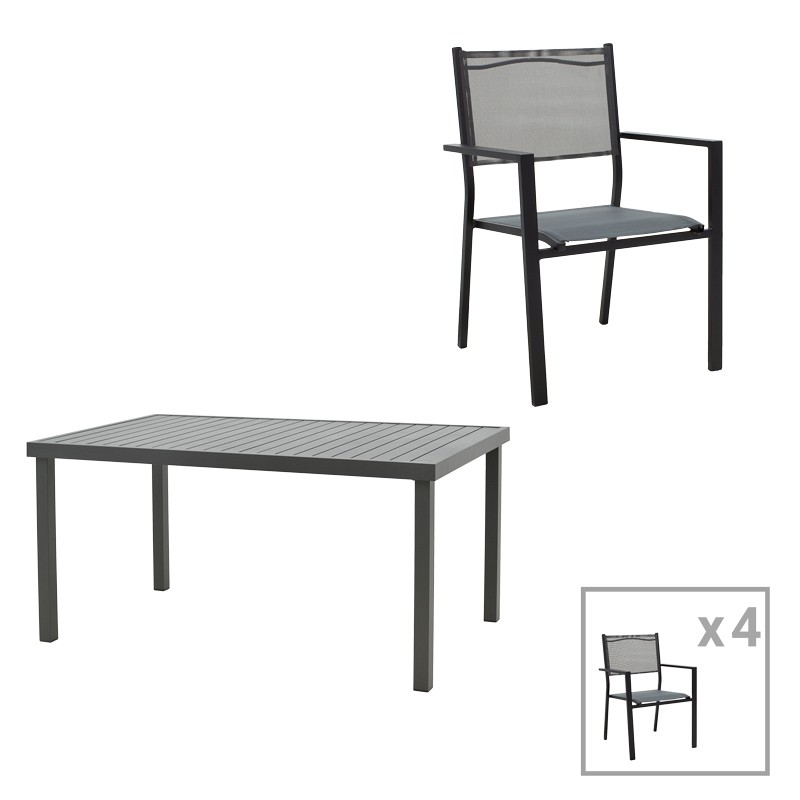 Το σετ αποτελείται από τέσσερις πολυθρόνες και ένα τραπέζι.Τεχνικά χαρακτηριστικά τραπεζιού: •Κατασκευή από αλουμίνιο. Το αλουμίνιο είναι ένα εξαιρετικά ανθεκτικό υλικό για εξωτερική χρήση, καθώς αντέχει στις καιρικές συνθήκες χωρίς να διαβρώνεται ή να σκουριάζει. Είναι επίσης ελαφρύ και εύκολο στη μετακίνηση, κάνοντάς τον ιδανικό για εξωτερικούς χώρους.