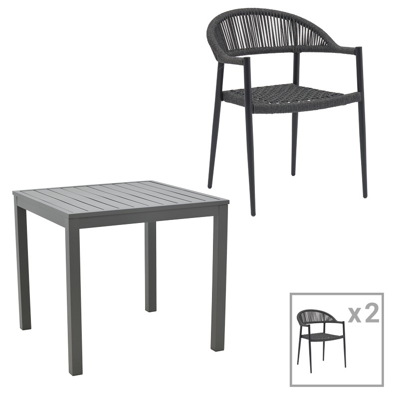 Τραπεζαρία Mabu-Synergy σετ 3τεμ pakoworld ανθρακί αλουμίνιο και plywood σε φυσικό χρώμα 80x80x74εκ