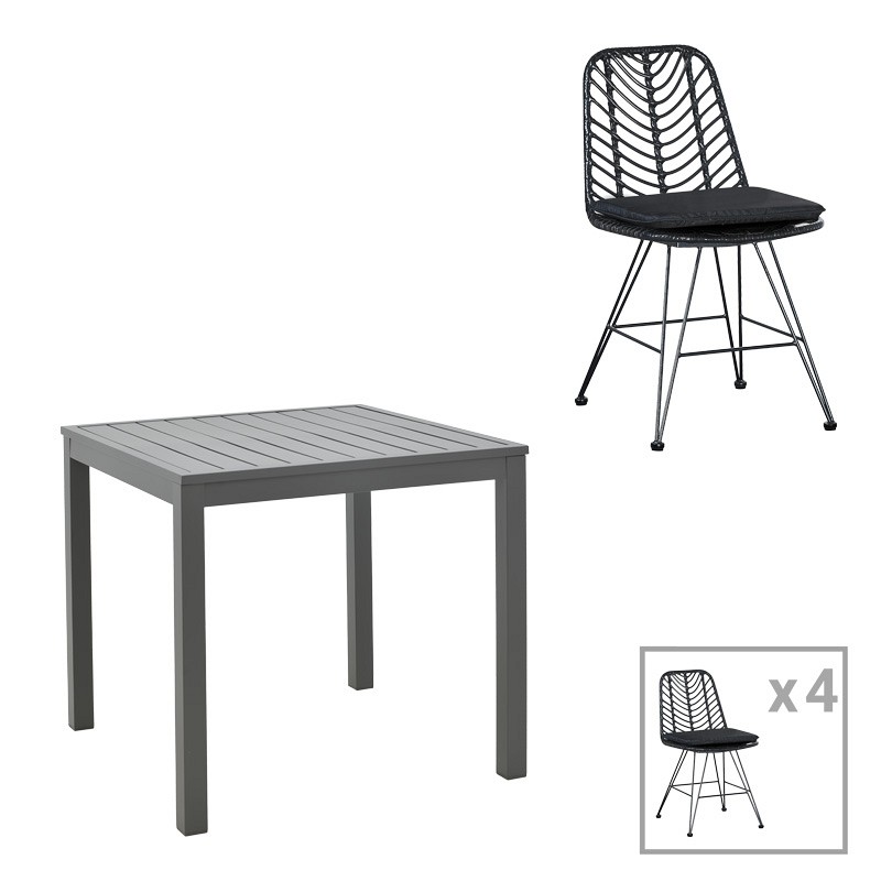 Κωδικός: 1000191432Τραπεζαρία Kliton-Naoki σετ 5τεμ pakoworld ανθρακί αλουμίνιο και μέταλλο σε μαύρη απόχρωση 80x80x74εκ