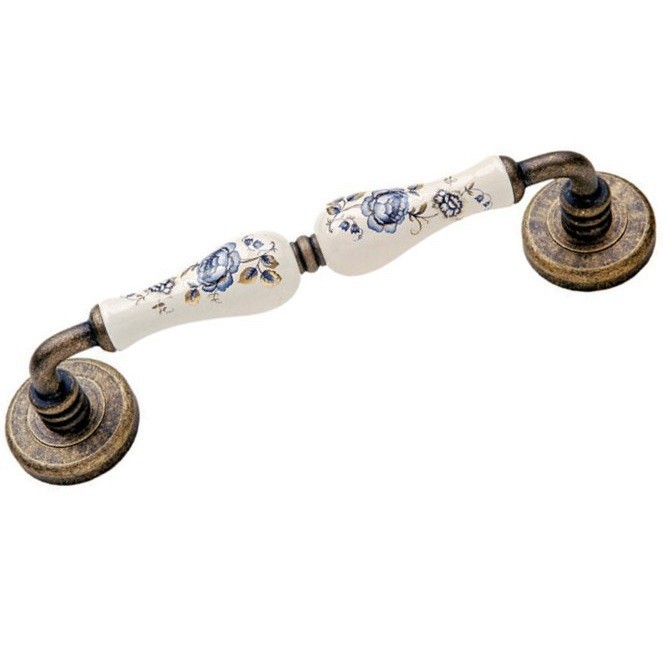 Κωδικός: 1000194039Roline Κ310 Λαβή Εξώπορτας από Ορείχαλκο & Πορσελάνη Αντικέ-Μπλε με Kέντρα 216mm