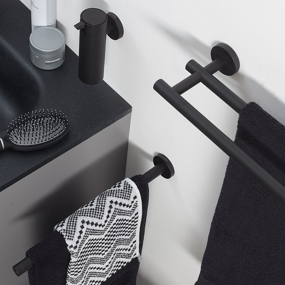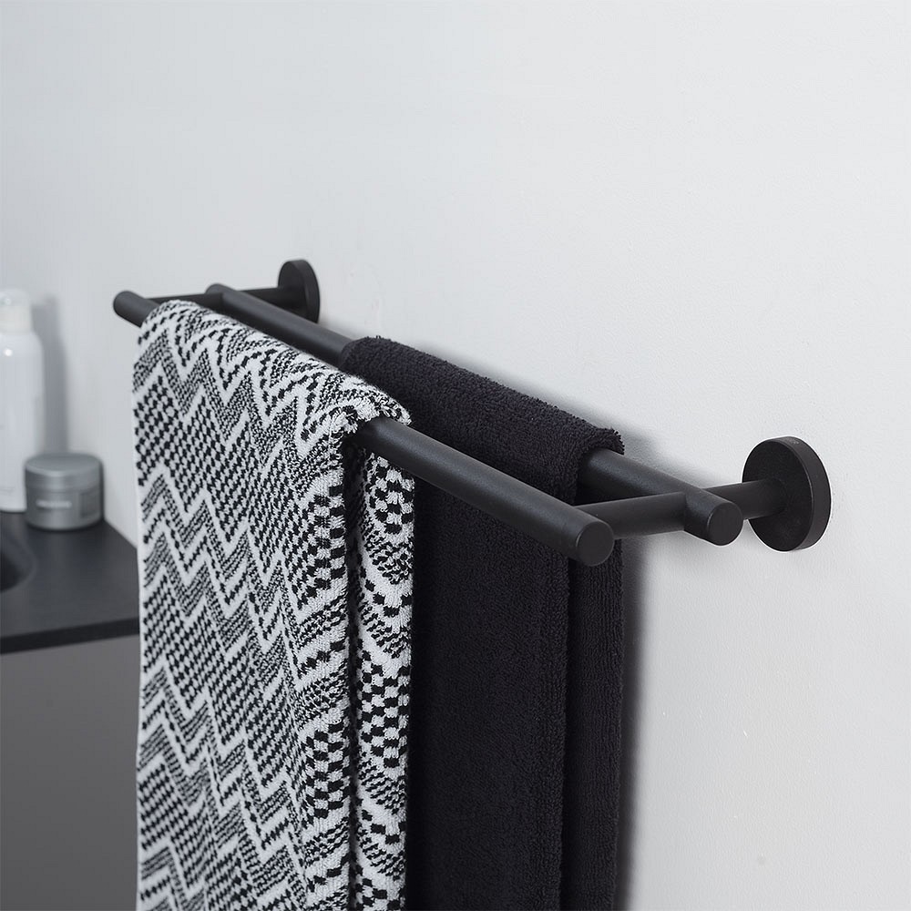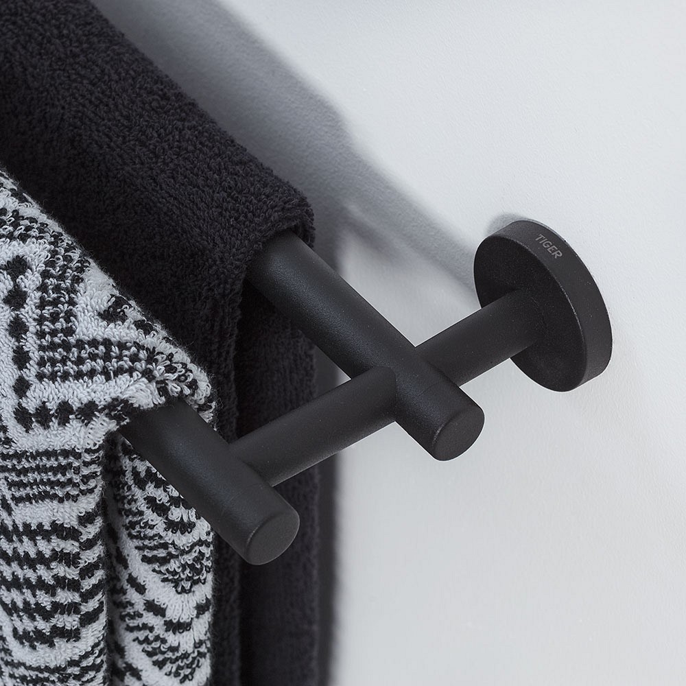 Η κρεμάστρα πετσετών Tiger Boston διαθέτει σύγχρονο μαύρο ματ φινίρισμα και διαθέτει δύο ράγες στις οποίες μπορείτε να κρεμάσετε πετσέτες. Το εξάρτημα μπορεί εύκολα να τοποθετηθεί στον τοίχο και το υλικό στερέωσης (περιλαμβάνεται) κρύβεται μετά την τοποθέτηση για κομψή εμφάνιση. Η σειρά Boston περιλαμβάνει μια μεγάλη ποικιλία από άλλα αξεσουάρ για το μπάνιο και την τουαλέτα, όλα όμορφα συνδυασμένα.