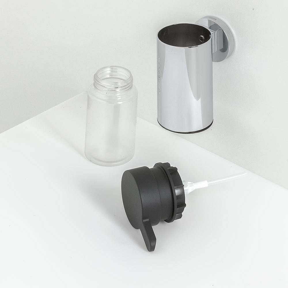 Η πλαστική δεξαμενή σαπουνιού αφαιρείται εύκολα από τη θήκη για αναπλήρωση.