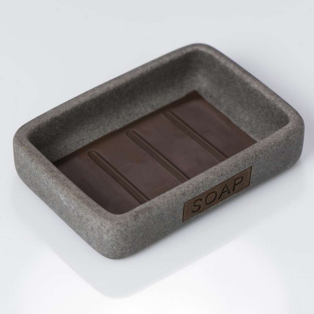 Η σαπουνοθήκη Pierra της Sealskin είναι κατασκευασμένη από πολυρεζίνη, ένα ανθεκτικό υλικό που παρασκευάζεται με το συνδυασμό φυσικής πέτρας και συνθετικής ρητίνης. Οι πινελιές που μοιάζουν με ξύλο στο πλάι αυτής της ζωγραφισμένης στο χέρι σαπουνοθήκης της δίνουν μια κομψή όψη.
