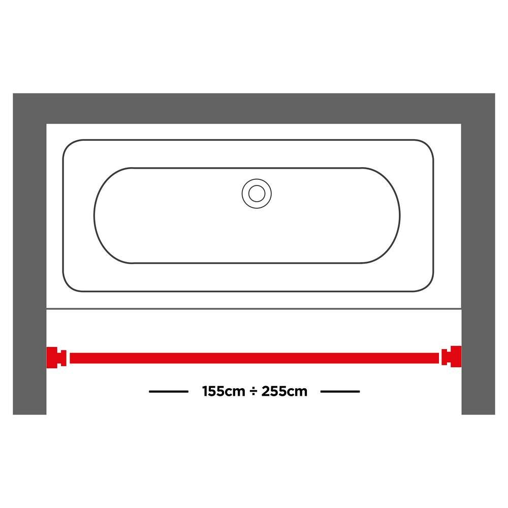 Ο βραχίονας μπάνιου της Sealskin είναι ιδανικός για όταν προτιμάτε να μην τρυπήσετε τα πλακάκια του μπάνιου σας. Αυτό συμβαίνει επειδή ο επεκτεινόμενος αυτός βραχίονας μπάνιου μπορεί εύκολα να στερεωθεί μεταξύ δύο τοίχων. Με ελάχιστο μήκος 155 cm, μέγιστο μήκος 255 cm και διάμετρο 20 mm, ο βραχίονας αυτός είναι κατάλληλος για όλους σχεδόν τους τύπους κουρτινών μπάνιου. Ο βραχίονας είναι κατασκευασμένος από ανθεκτικό αλουμίνιο.