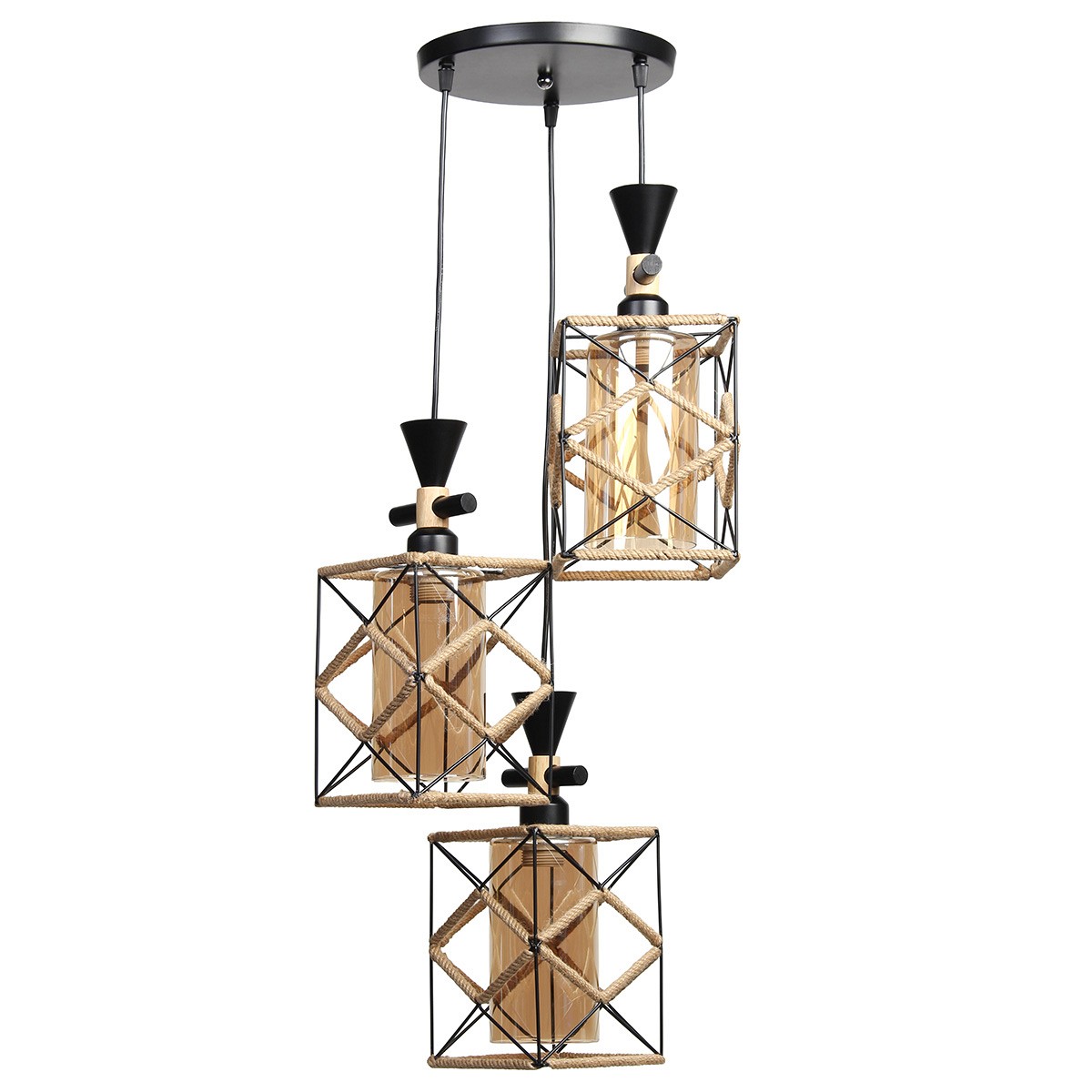 Κωδικός: 1000203411Φωτιστικό μεταλλικό κρεμαστό άνισο 3 Χ Ε27 Φ23 εκ. Μαύρο με σχοινί και γυαλιά - GLOBOBOX 526843