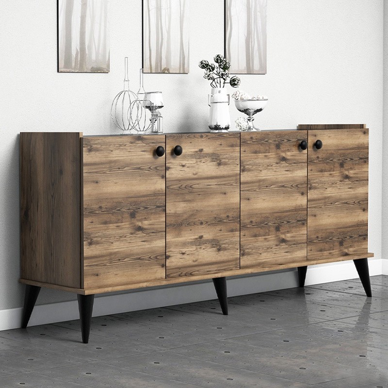 Μπουφές Lidya Megapap χρώμα καρυδί - μαύρο εφέ μαρμάρου 182x41x82,5εκ.