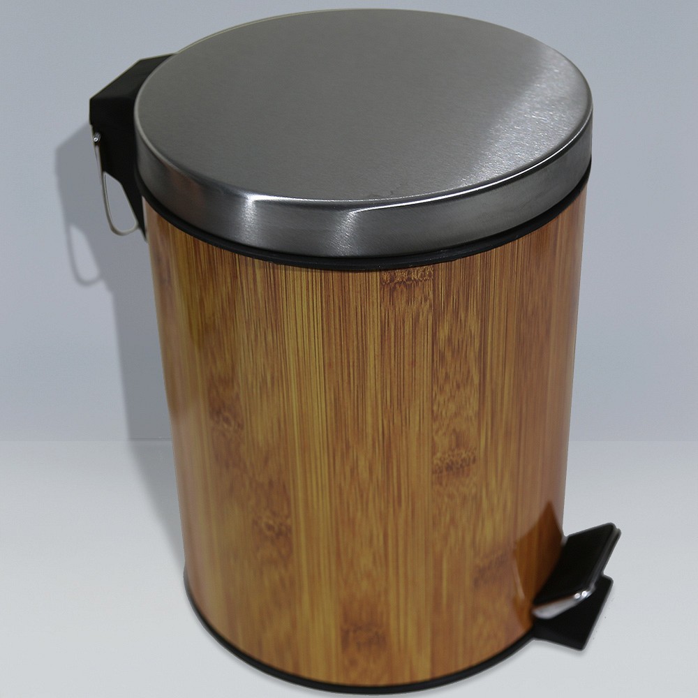 Κάδος 5 λίτρα ορθογώνιος με παλλόμενο κάλυμμα bamboo μπέζ 14χ14χ20,50 cm Eurocasa