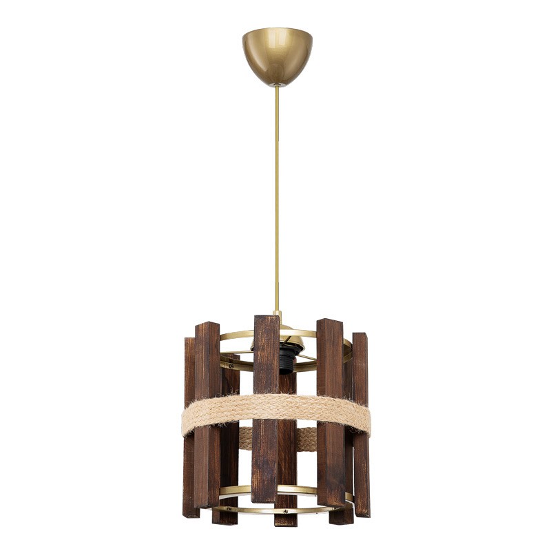 Φωτιστικό οροφής μονόφωτο Tazma pakoworld ύφασμα σε καφέ και κρεμ απόχρωση Φ38x65εκ